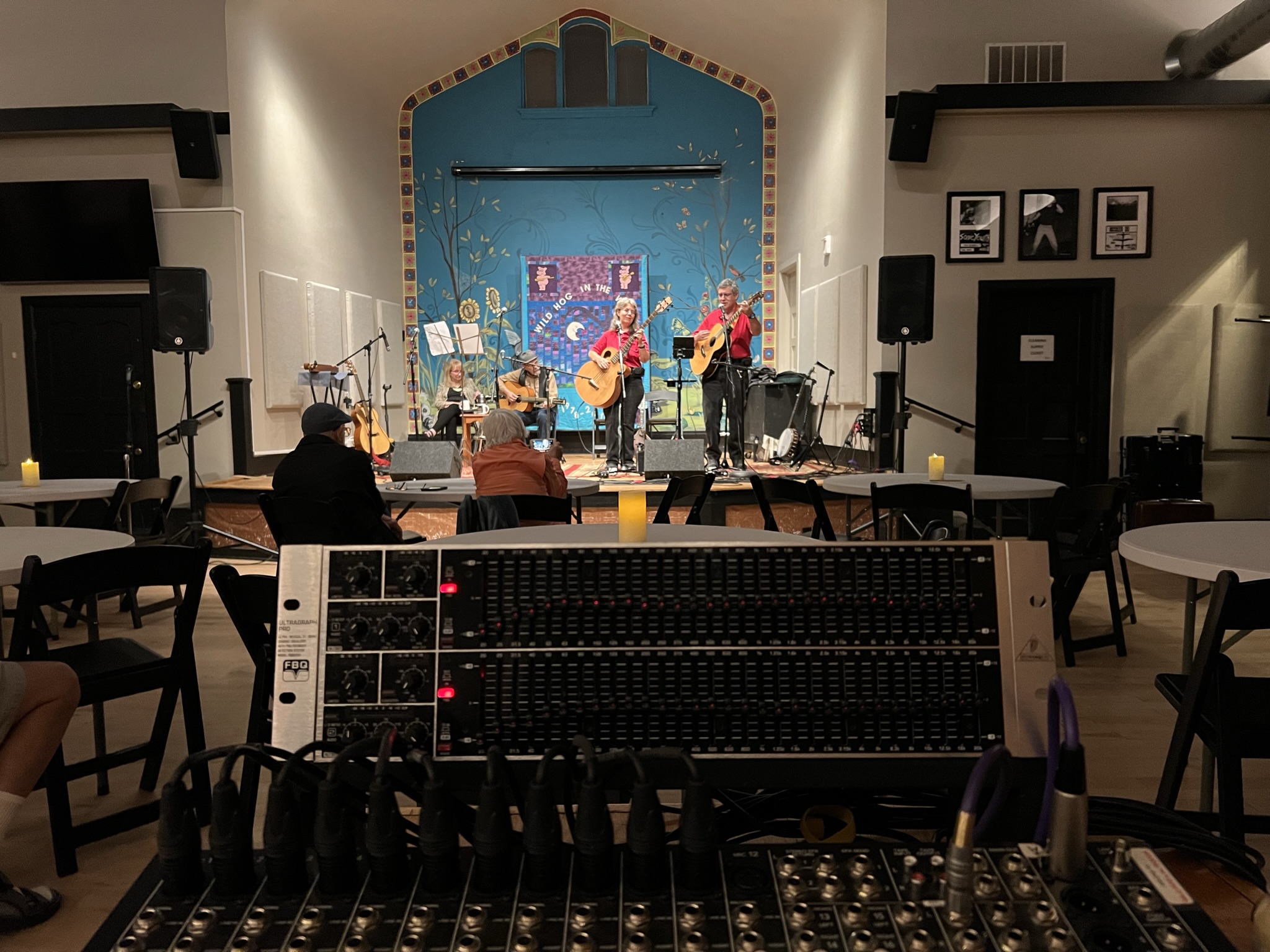 The Hog owns a complete sound system for amplifying acoustic instruments and voices to carry properly from the Coffeehouse stage. Here are some references for our Sound Operators.